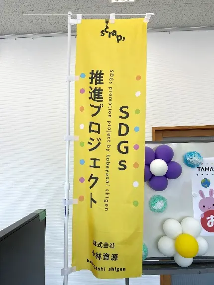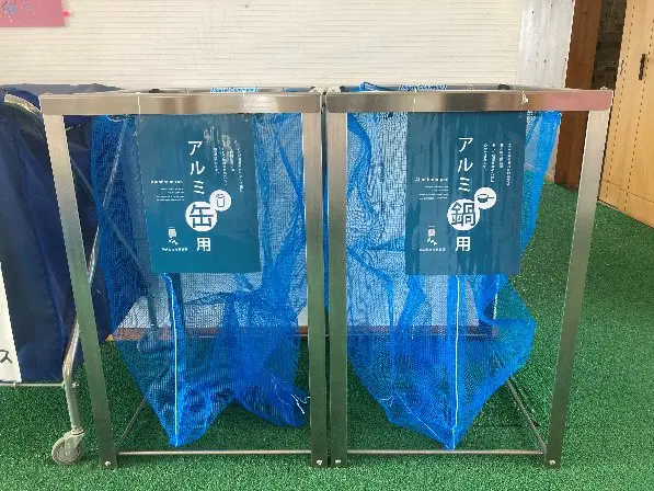 不要になった金属類を再利用して公園に遊具を設置するため、鍋類やアルミ缶等の回収BOXを設置。協賛企業:㈱小林資源、サンエイ株式会社