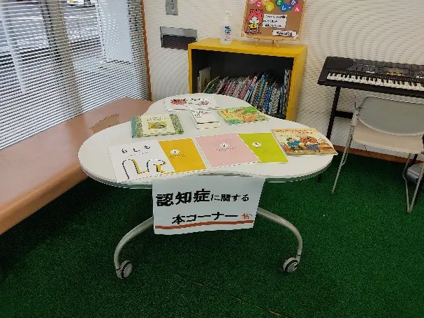 - ミニこども図書館と電子キーボードが置かれています。ご自由に利用ください。