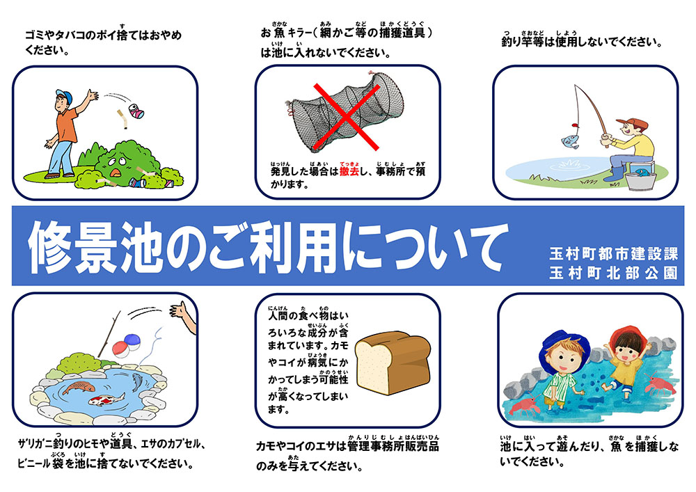 玉村町を囲む上毛三山(赤城・榛名・妙義)をイメージし、修景池の北と西に小高い山(築山)を配置しています。